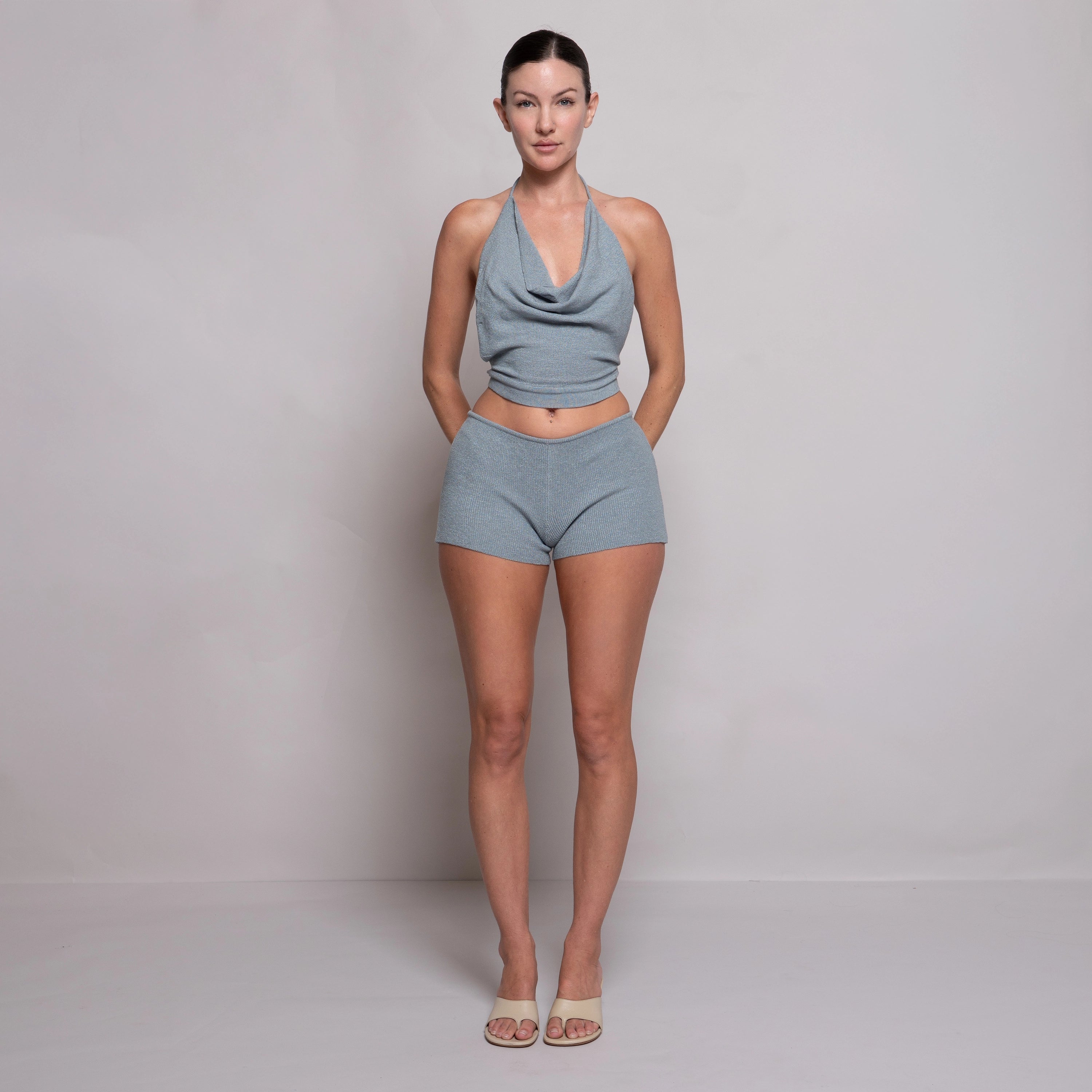 Knit Cowl Top Dusty Blue