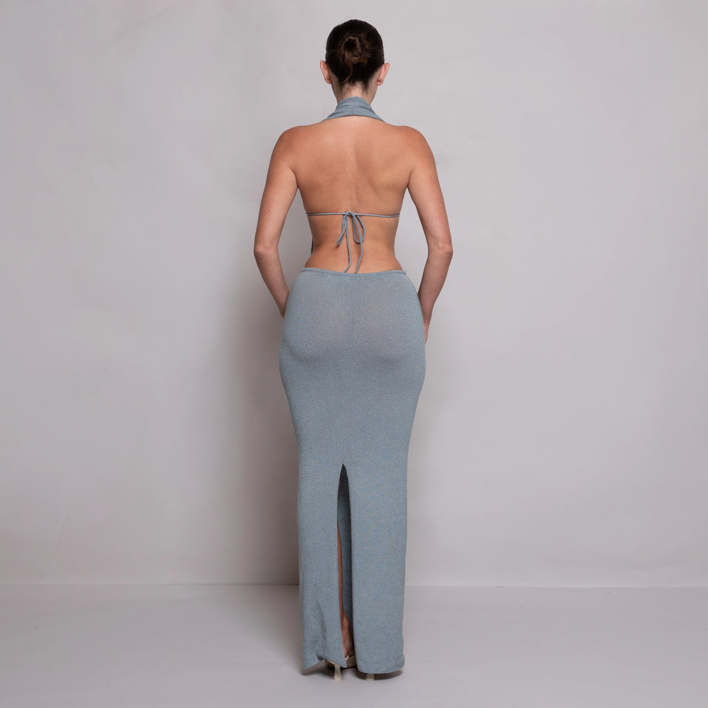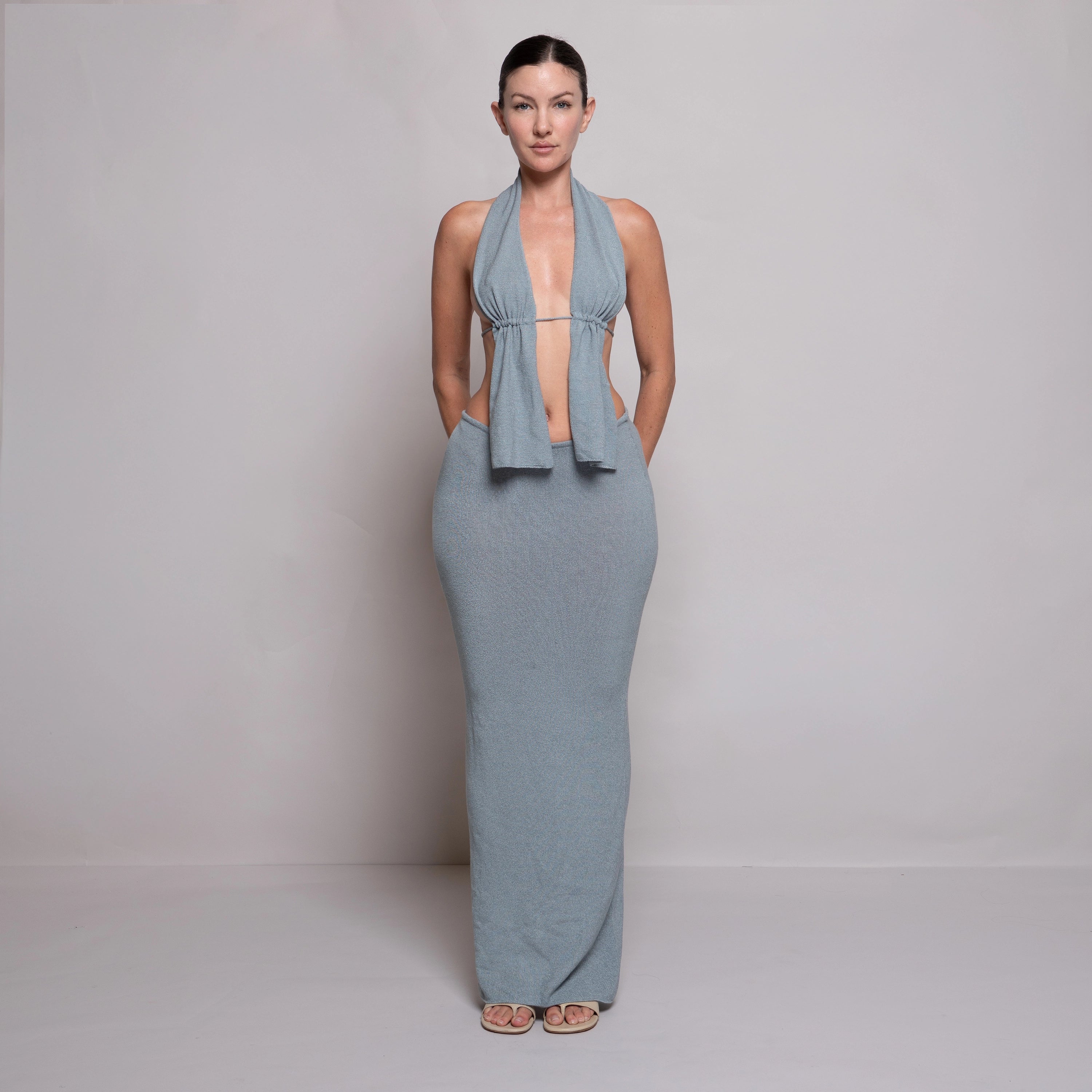 Featuring a halter top with a tie around the waist, our Knit Halter Tie Top and an open back design. Simple and elegant, pairs well with any of our knit bottoms such as the mini shorts or tie side flares. Made of our woven knit material from Bali.