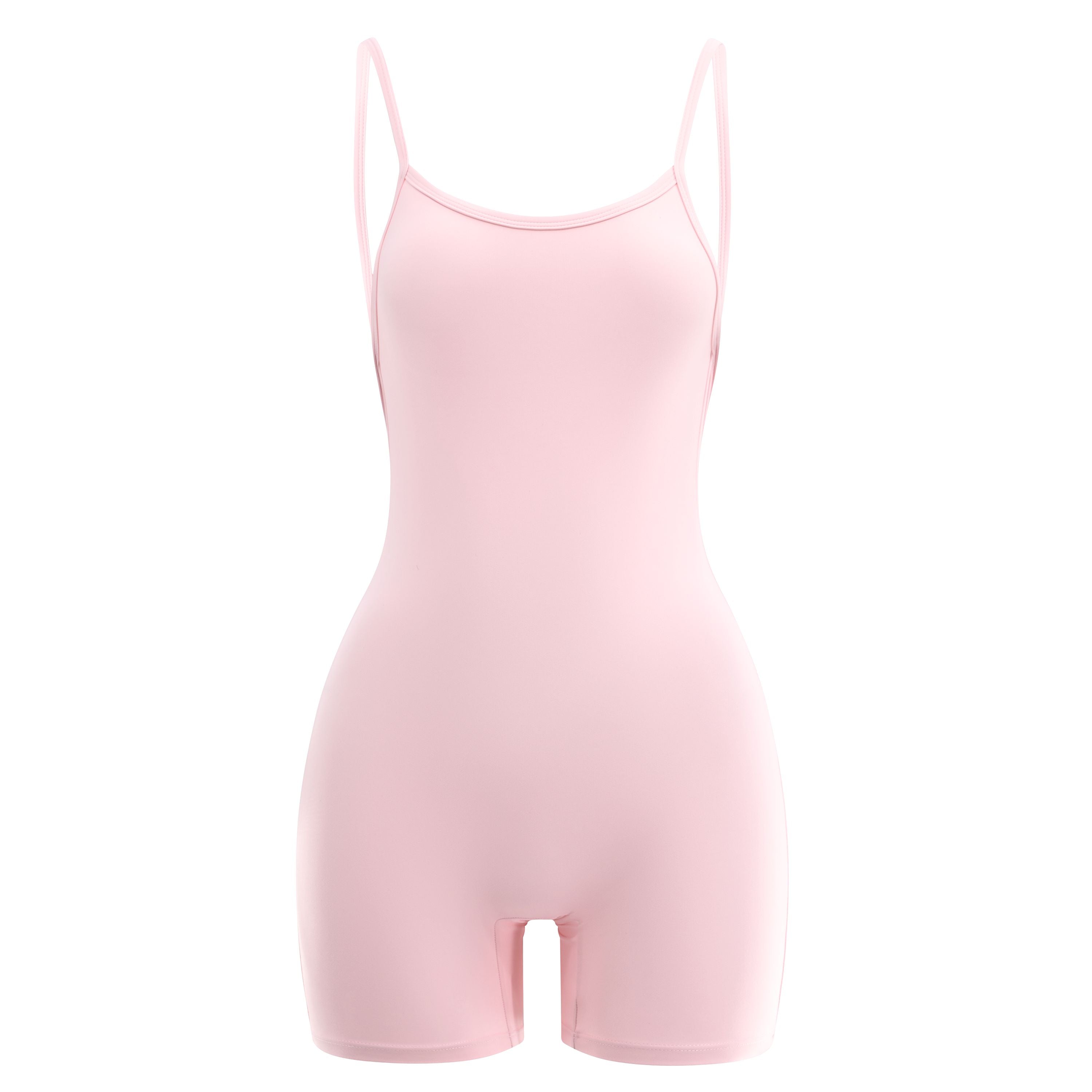 Our newest romper, featuring a shorter 3.5 inch inseam. Cami straps and a low cut back in our nylon spandex form-fitting versatile fabric. True to size.