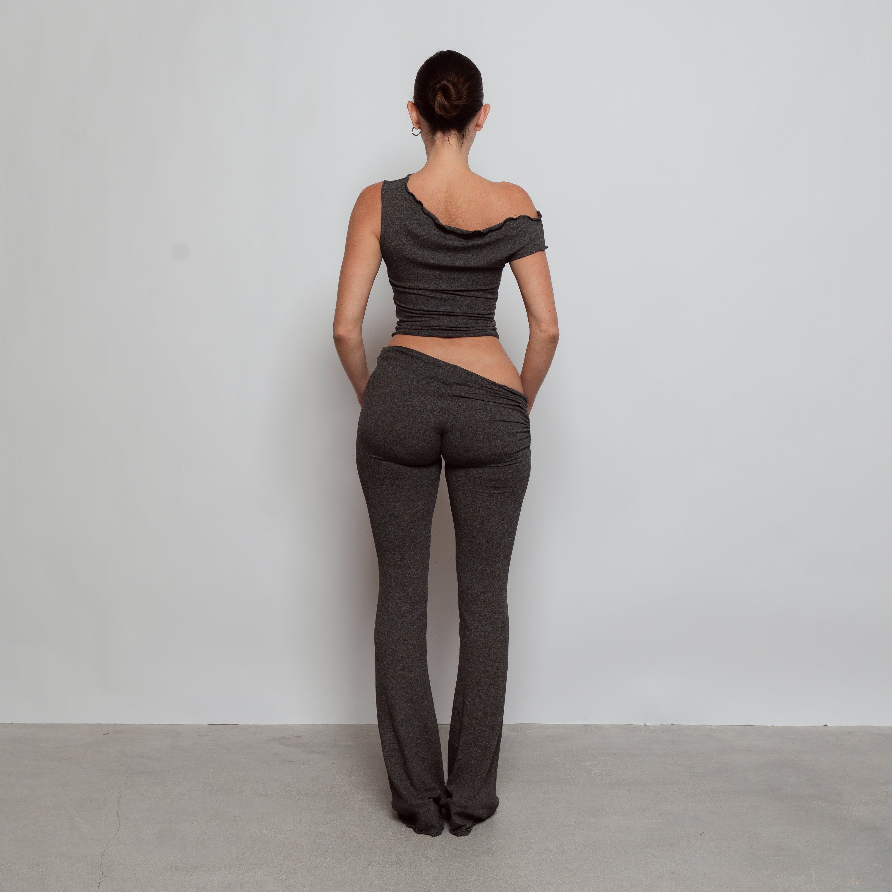 Our Drape Asymmetrical Flares are ruched on one side to accentuate your hips. Wear the ruched size low rise while pulling the opposite side up for an asymmetrical look. Single lined so our lighter colors do tend to be more sheer. Pair with a seamless skin-toned thong.