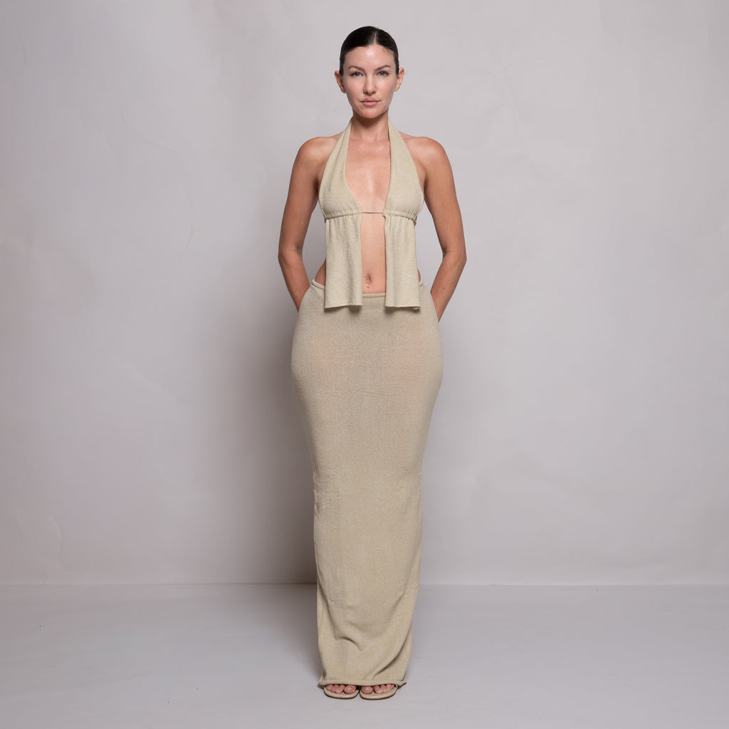 Knit Halter Slit Dress Beige