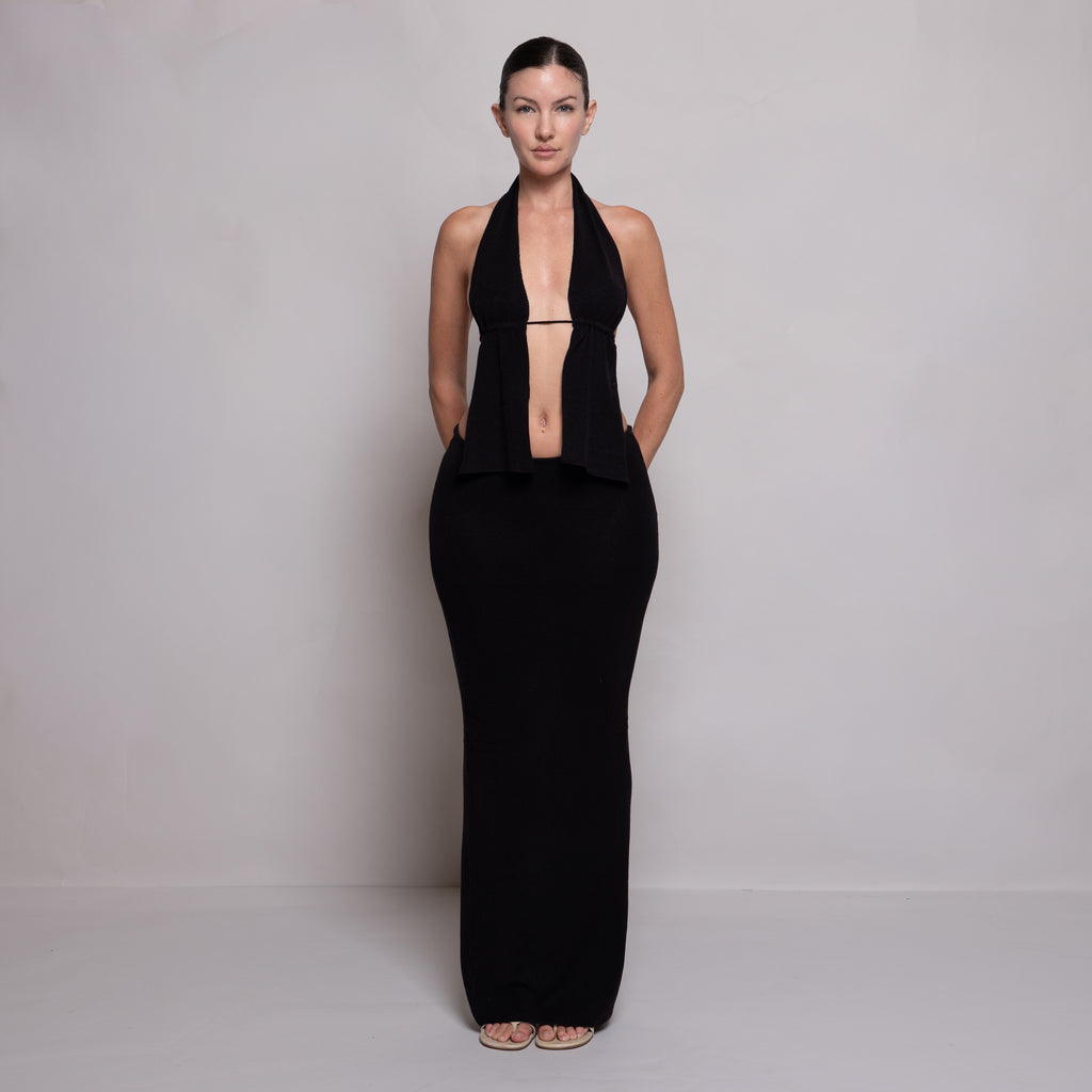 Knit Halter Slit Dress Black