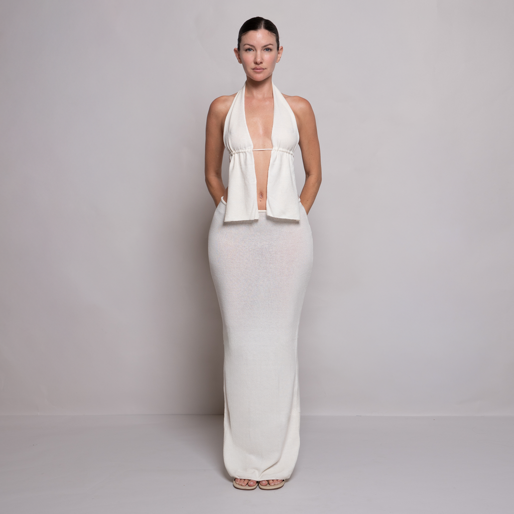 Knit Halter Slit Dress Ivory
