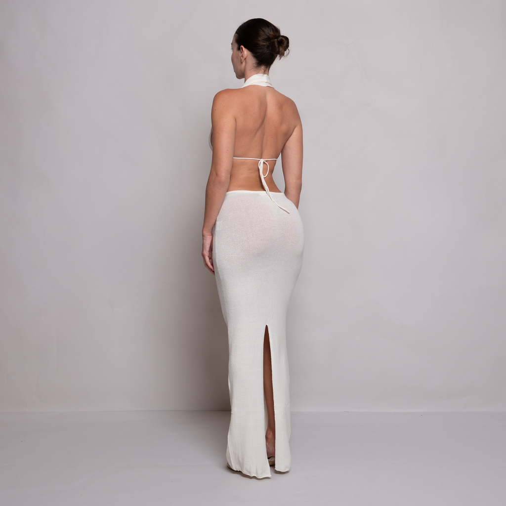 Our Knit Maxi skirt can be worn either low or high rise, featuring our yarn knit fabric. Slit down the back for a fitted silhouette that hugs your shape. Pairs well with our knit tops.